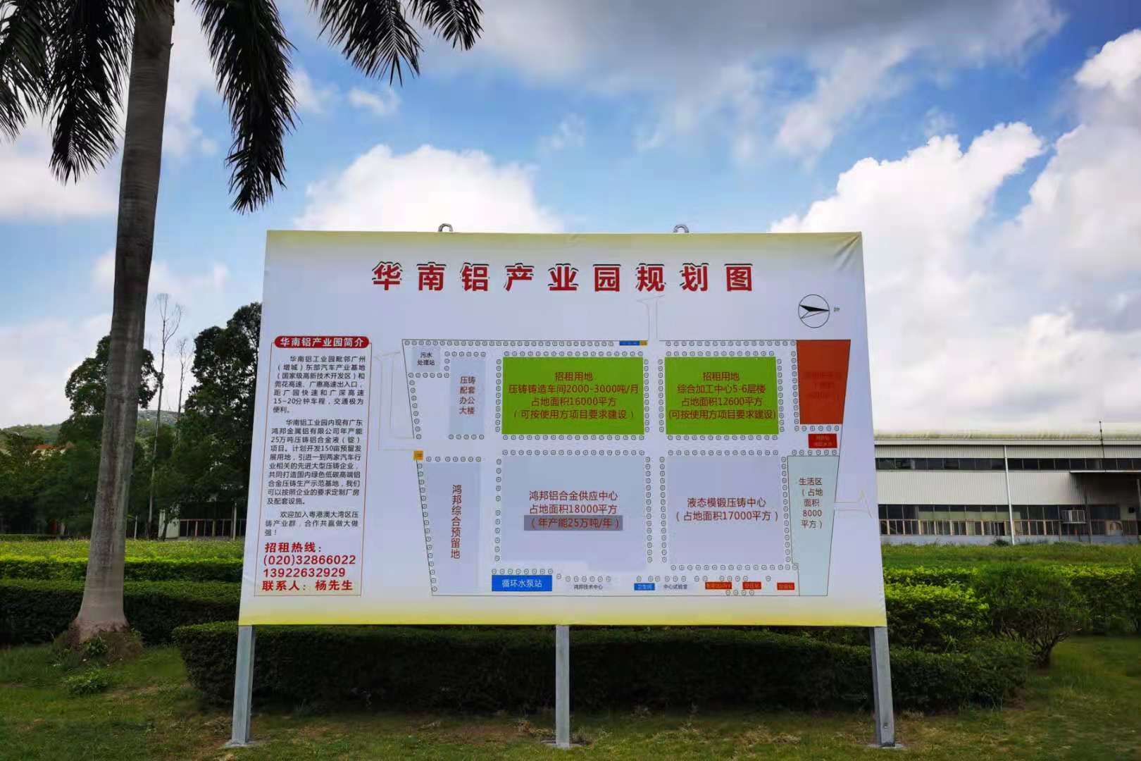 華南鋁產業園簡介華南鋁產業園毗鄰廣州(增城)東部汽車產業基地(國家級高新技術開發區)和莞花高速、廣惠高速出入口,距廣園快速和廣深高速15~20分鐘車程,交通極為便利。華南鋁產業園內現有廣東鴻邦金屬鋁有限公司年產能25萬噸壓鑄鋁合金液(錠)項目。計劃開發150畝預留發展用地,引進一到兩家汽車行業相關的先進大型壓鑄企業,共同打造國內綠色低碳高端鋁合金壓鑄生產示范基地,我們可以按照企業的要求定制廠房及配套設施。歡迎加入粵港澳大灣區壓鑄產業群,合作共贏做大做強!招…